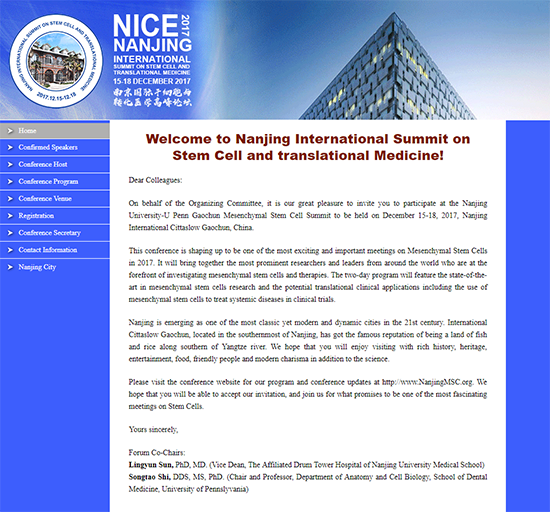 2018-05-30 查看更多12月16日至17日,2017南京國際干細胞與轉換醫學(xué)高峰論壇將在南京市高淳區隆重召開(kāi)!本次論壇由江蘇省醫學(xué)會(huì )、南京大學(xué)醫學(xué)院附屬…